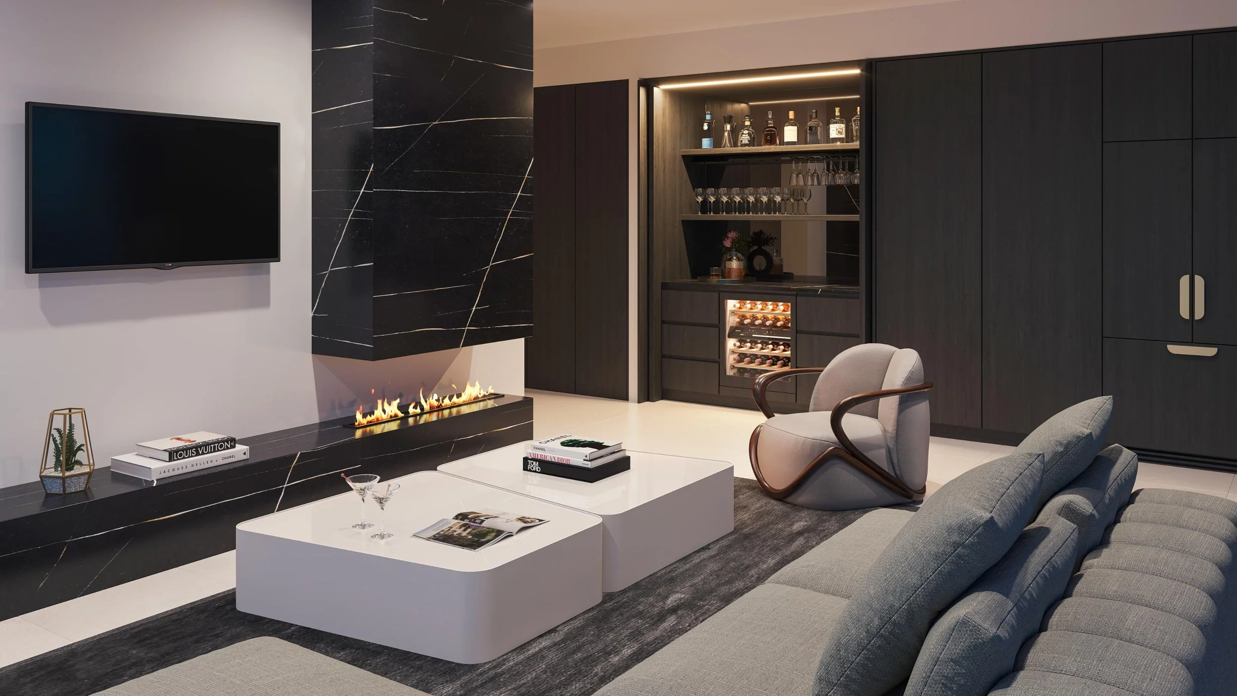 • High-end finishes with LED downlights.